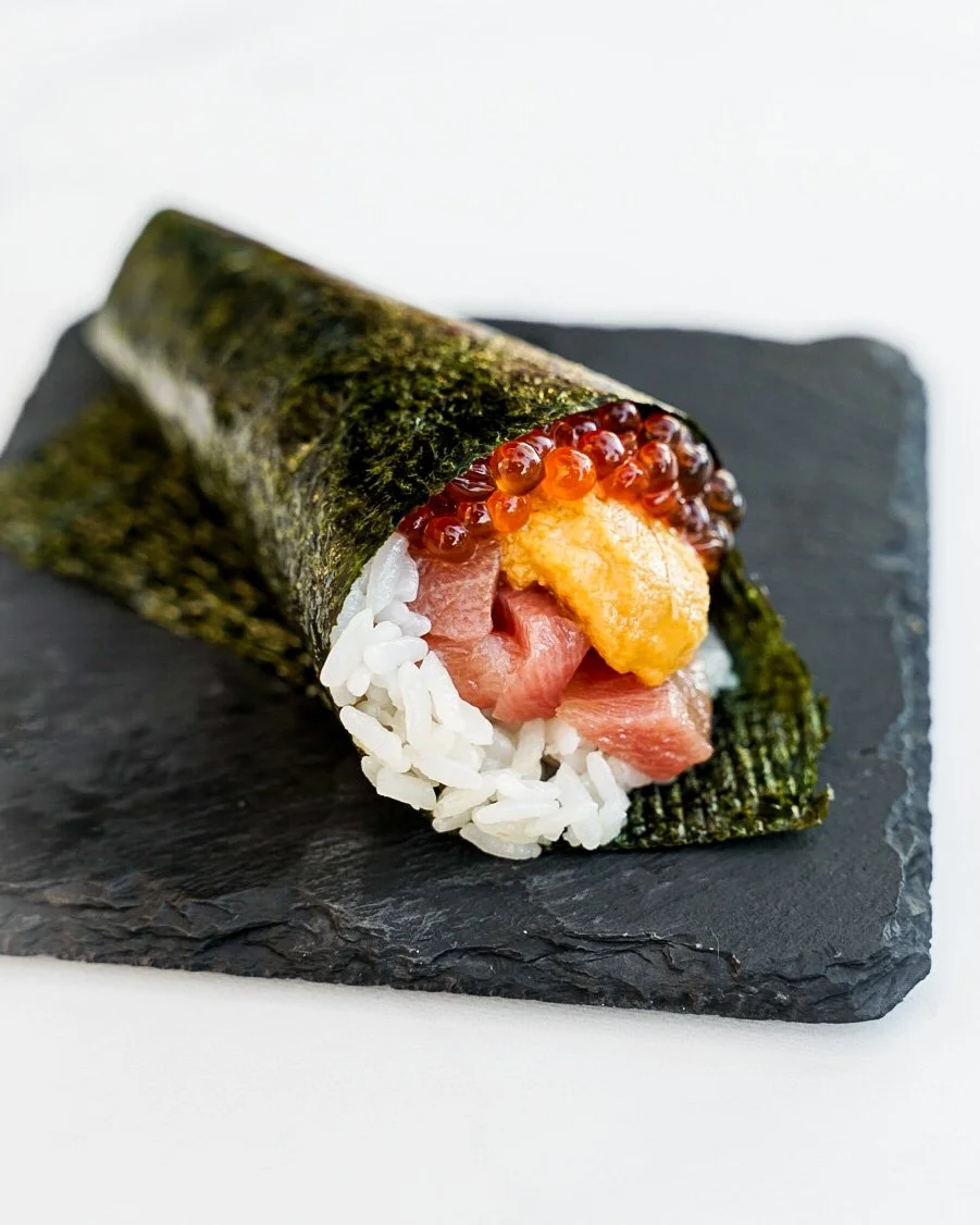 Can be served as a hand roll or 6 piece cut roll